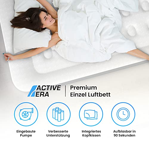 Active Era Premium Luftbett 1 Person, Luftmatratze selbstaufblasend mit eingebauter elektrischer Pumpe & integriertem Kissen, Aufblasbare Matratze für Camping & Gästebett – 99 x 187 x 53cm
