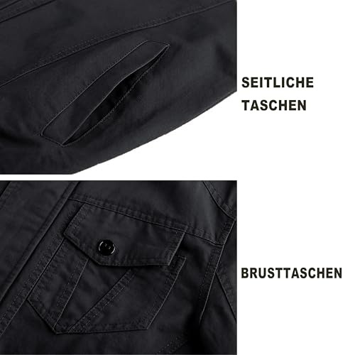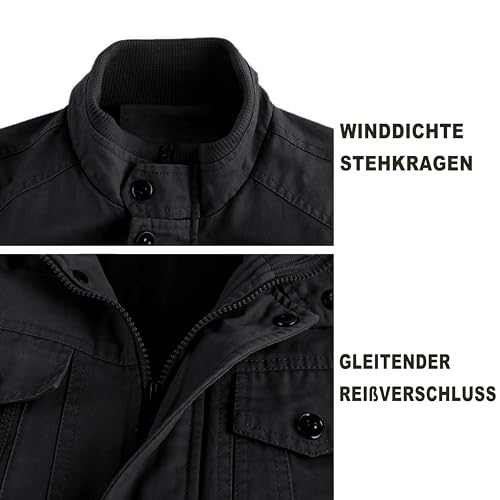 MAGCOMSEN Herren Übergangsjacke Winddichte Cargo Outdoorjacke Frühling Blouson Jacke Militär Armee Fliegerjacke Baumwolle Stehkragen Arbeitsjacke mit Multi Taschen