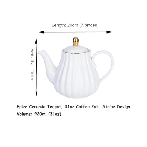 Eplze Strength Porzellan-Kaffeekanne, Keramik-Teekanne, Streifen-Design, Weiß