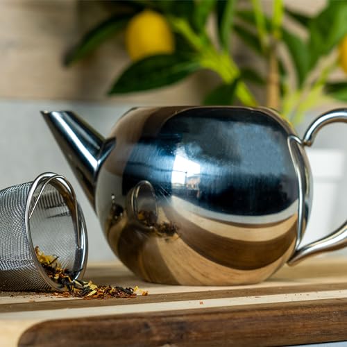 Grunwerg Café Olé Rondeo Teekanne mit Teeei – 18/10 Edelstahl, 17 oz, 500 ml