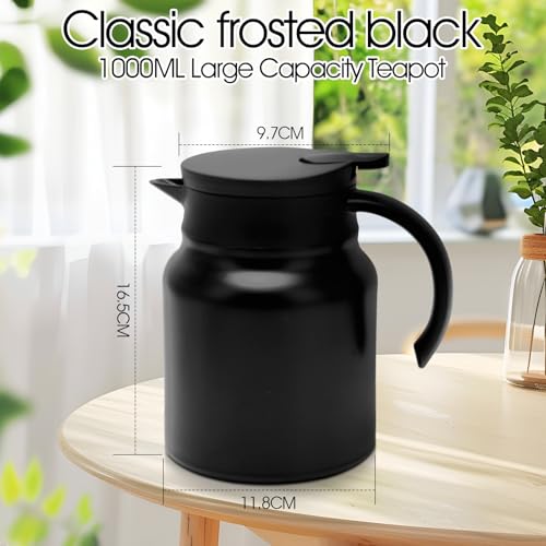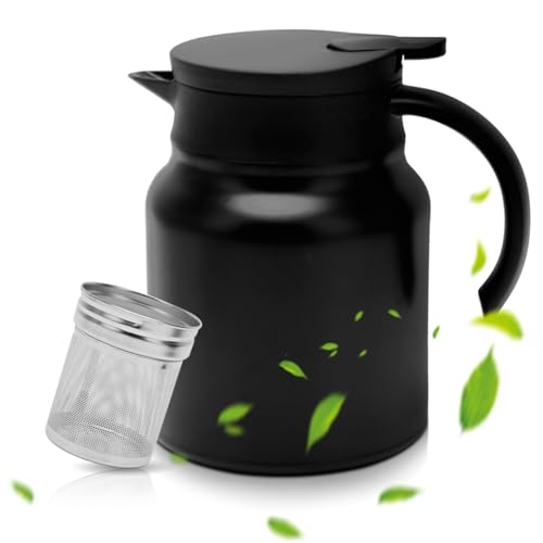 Thermoskanne 1L, Gohytal Kleine Thermoskanne mit Siebeinsatz Edelstahl Kaffeekanne Pumpkanne Hält mit Herausnehmbarer für Heißen Kaffee Tee Milch für Travel Zuhause Büro Camping Ausflüge