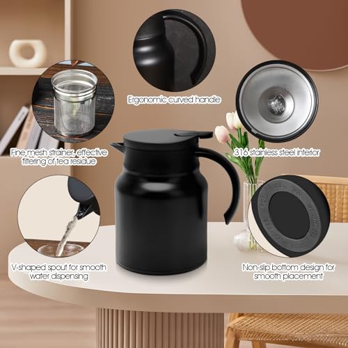 Die Thermosflasche ist zudem mit einem Teesieb ausgestattet, sodass Sie auch Ihren Lieblingstee direkt darin zubereiten können. Feinmaschige Filter effektiver Filtration, der Boden ist glatt und bequem für Sie zu platzieren.
