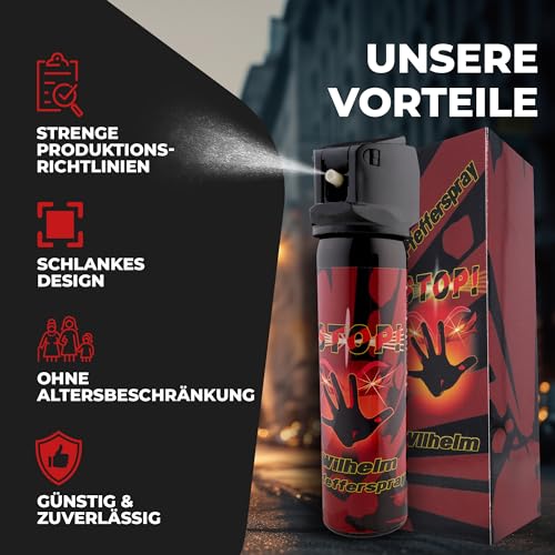4 x Wilhelm Pfefferspray Tierabwehr Selbstverteidigung CS KO Spray hochdosiert (ca. 2 Mio. Scoville) effektives Verteidigungsspray