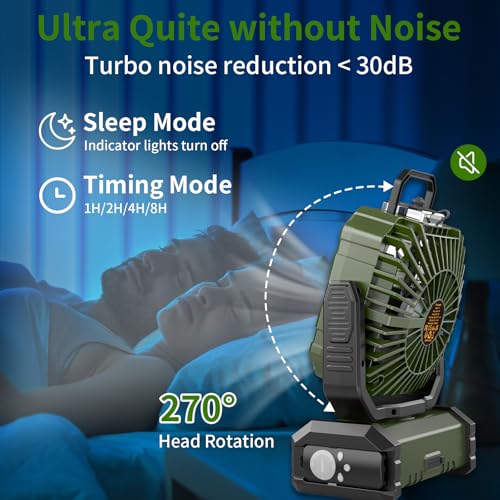 【Leiser Tragbarer Ventilator】Mit bürstenloser Motortechnologie und leichten Ventilatorblättern sorgt der Camping-Ventilator für einen starken Wind bei geringstem Geräuschpegel (